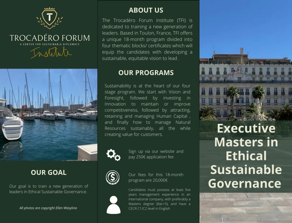 We are now accepting applications for our Executive Masters program in Ethical Sustainable Governance .