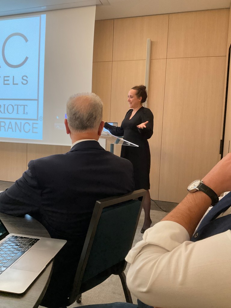 The conference was followed by cocktails and tapas on the rooftop of the AC Hotel Marriott , with discussions continuing overlooking La Baie des Anges.